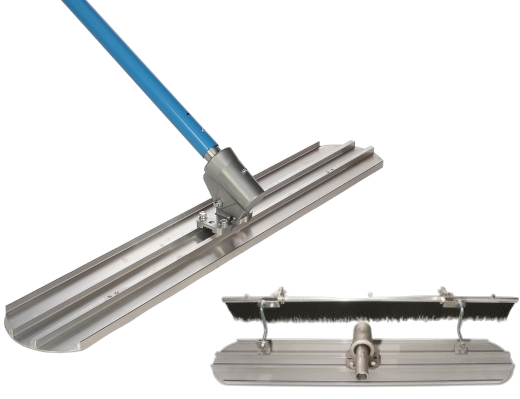 The bullfloat is the concrete workers work horse for flat surfaces. It pushes down the aggregate stone and brings fine material to the surface ready for sealing or texturing. The bullfloat is ready drilled and tapped to fit the Fresno Broom adaptor kit to achieve brushed textured finish. Each tool set is supplied complete with the worm drive pitch control and 3 X 1.8m extension handles (3 X 1.4m for the red model).