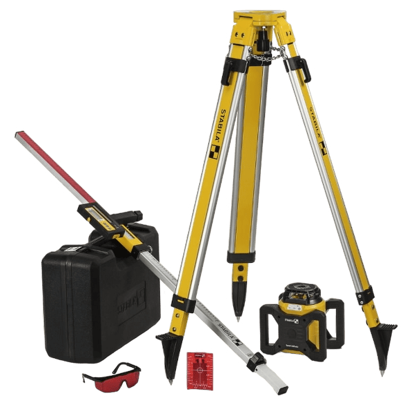 7-piece set: laser, receiver, tripod, levelling rod, goggles, target plate & carrying case