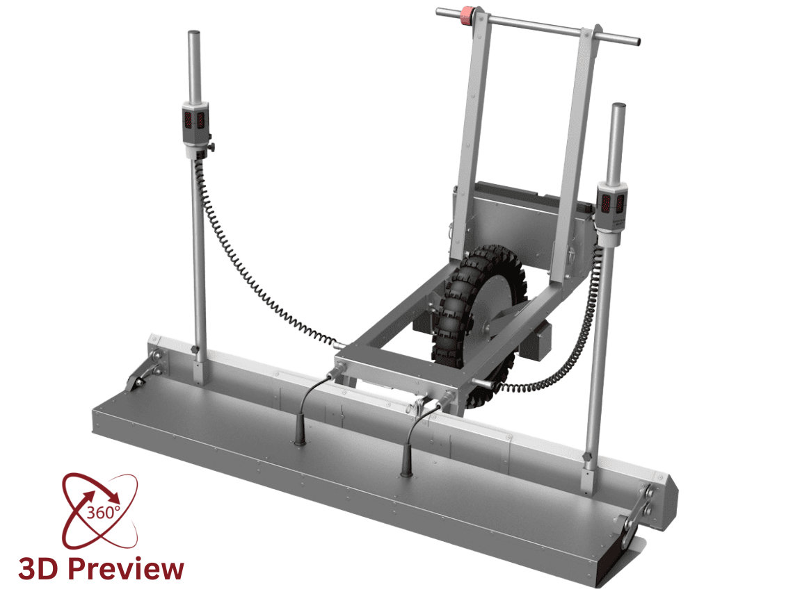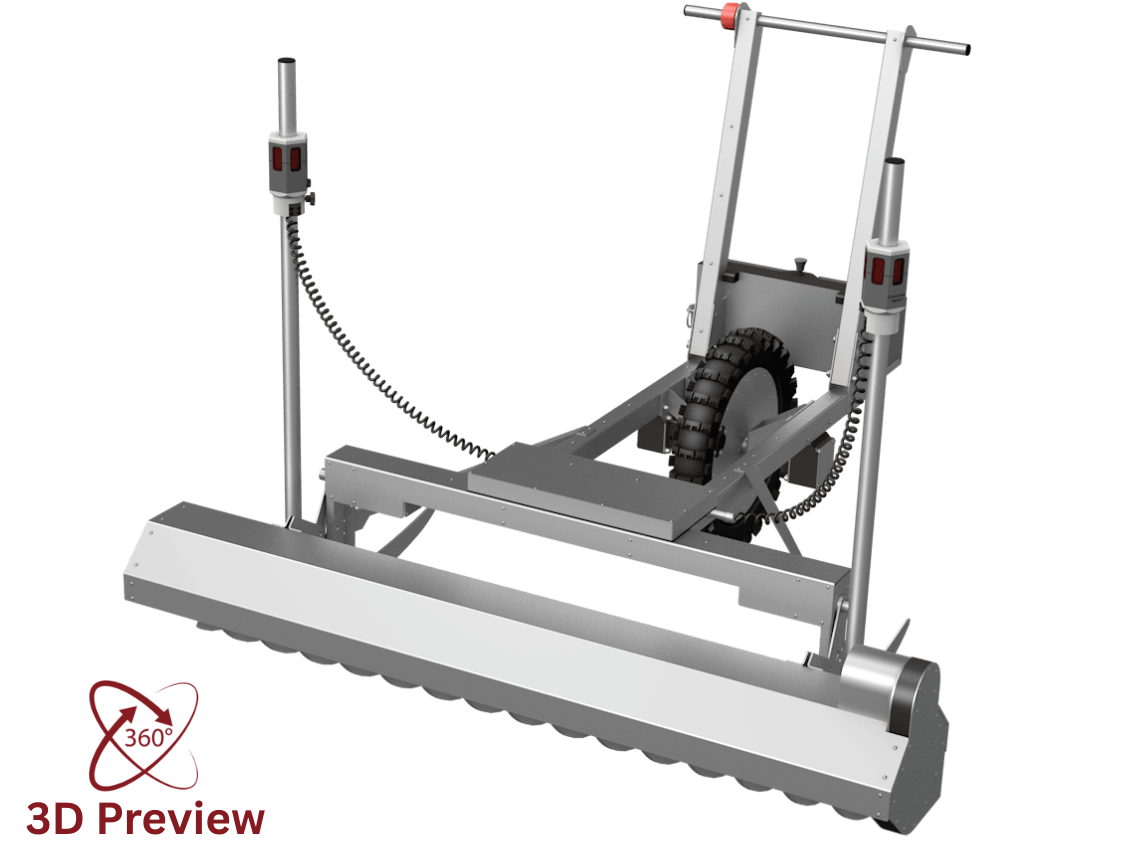 Suitable for S2/S3/S4 concrete. The device is compact and lightweight, making it suitable for concrete leveling in any situation. The device plows the concrete to the correct height, and the vibration screed smooths it flat. It can be operated by any construction worker, with no long-term experience or qualifications required. The advantages of Concrete Wolf’s laser screed are its affordable price, user comfort, simplicity, ease of transport. Works with tool batteries (Milwaukee, Makita, DeWalt, Bosch, Metabo & Hilti) or 12V LiFePO₄.