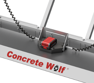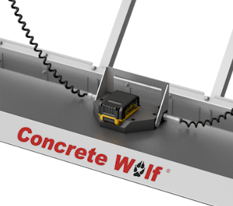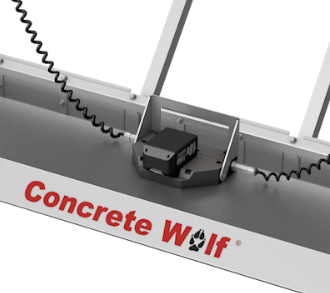 The device works by plowing the concrete to the correct height, then using a vibration screed to smooth it flat.